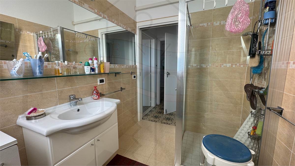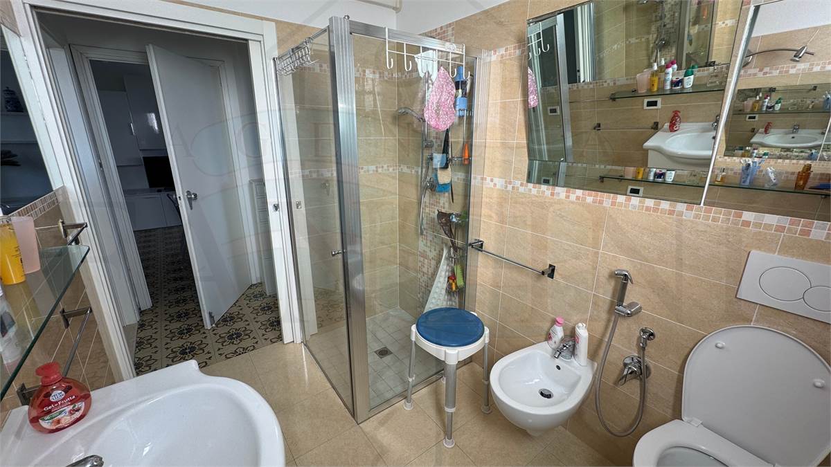 L'appartamento dispone di due camere matrimoniali spaziose, garantendo il massimo del comfort. Il bagno, recentemente ristrutturato, è elegante e moderno, mentre l'aria condizionata con inverter in tutte le stanze assicura un clima perfetto in ogni stagione. Inoltre, il posto auto condominiale e la cantina di proprietà offrono ulteriore praticità.